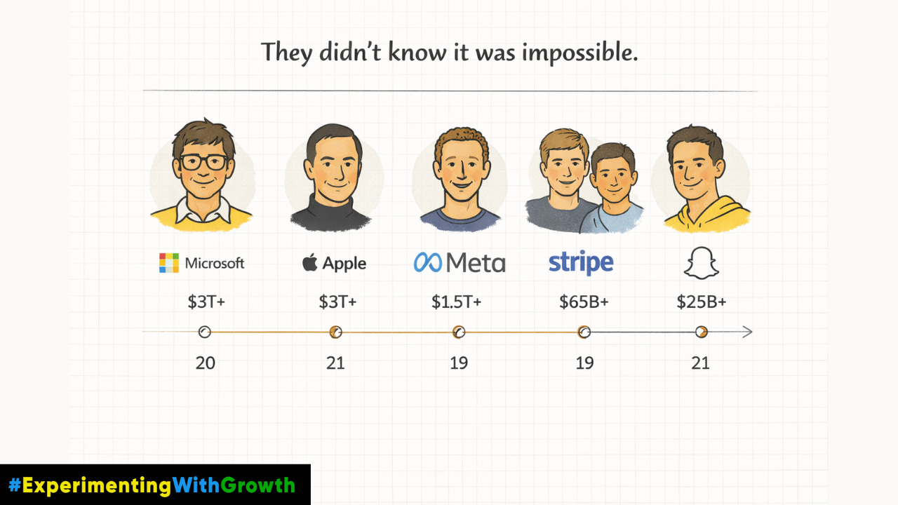 Patrick and John Collison started Stripe at 19 and 21. Two Irish teenagers decided to fix online payments, a problem massive banks had struggled with for years. No fintech experience. No regulatory expertise. They just thought existing solutions were bad and started building. Stripe is now valued at over $65 billion.