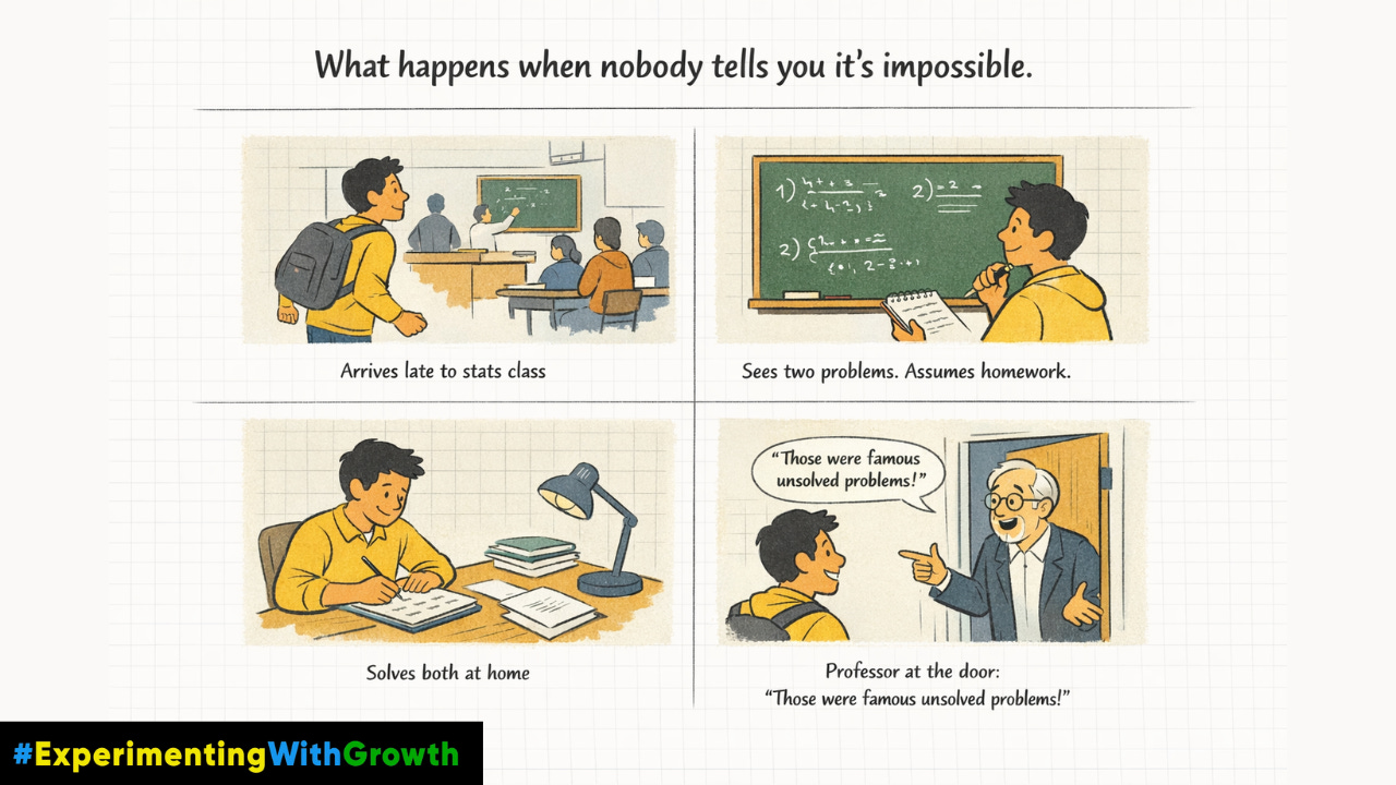 George Dantzig solved "unsolvable" problems because he thought they were homework. The same principle builds empires.