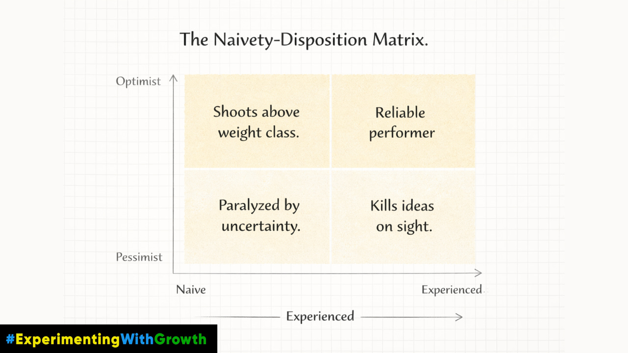 The naive optimist swings above their weight class. They set ambitious targets because they genuinely don’t know those targets are “unrealistic.” And sometimes, because they aim so high, they hit things veterans never even attempt.