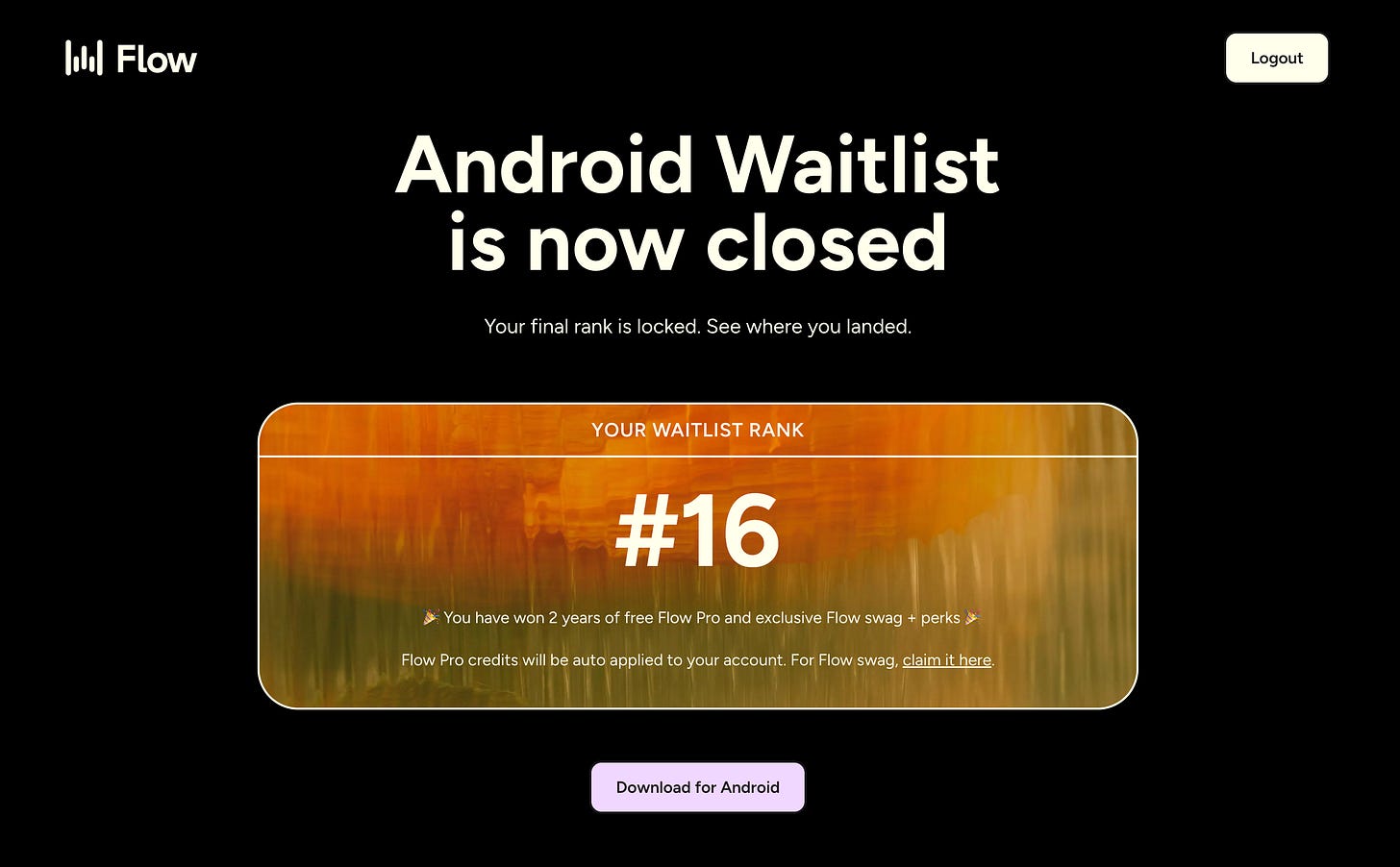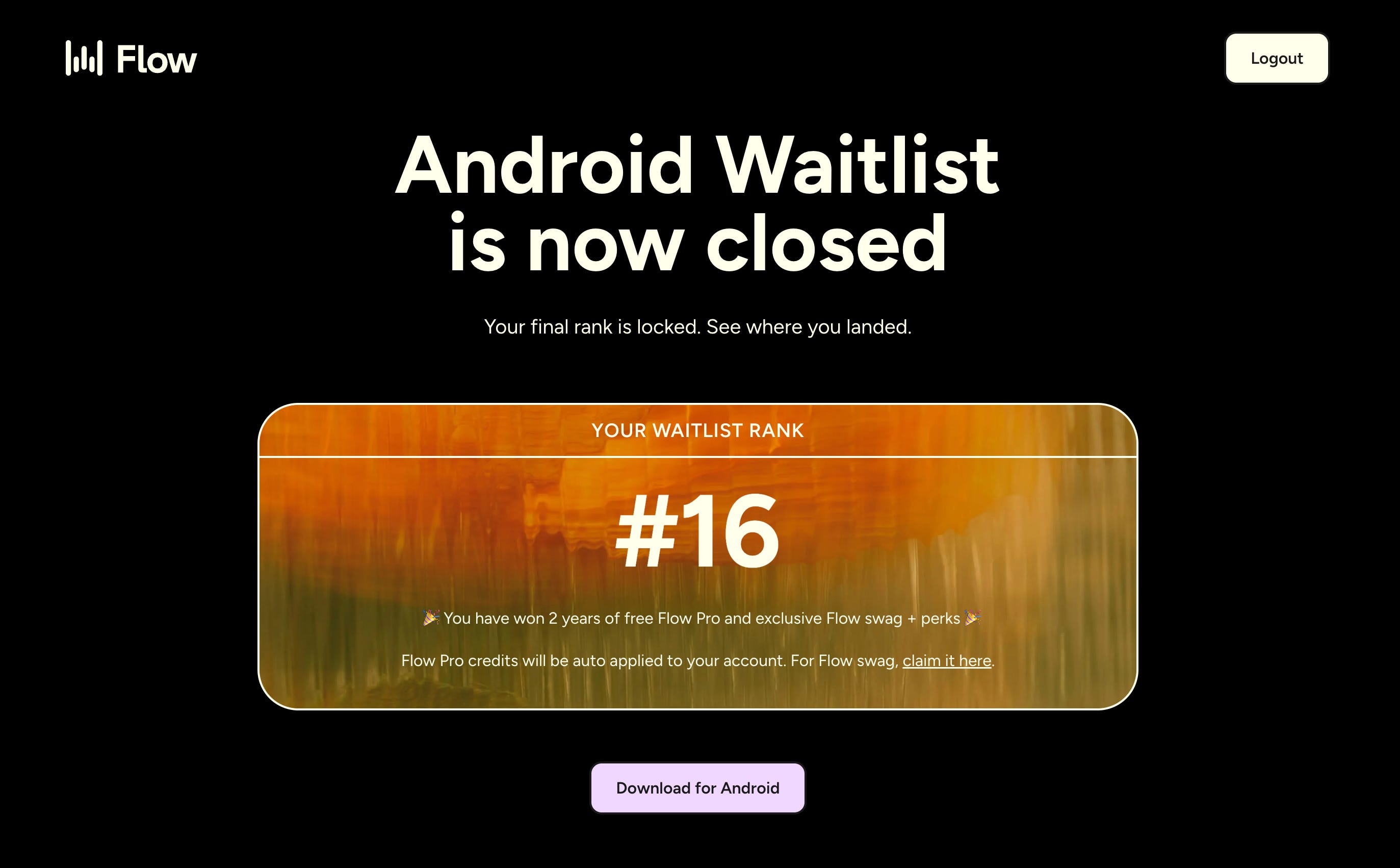 Wispr built a gamified waitlist for their Android launch that generated 375,000 signups before shipping any Android code. Users could share on social platforms to improve their leaderboard position, earn referral multipliers when friends signed up, and compete for top-100 exclusive merchandise. A hidden closing deadline maintained FOMO for weeks, though some early supporters felt the mechanics favored last-minute participation.