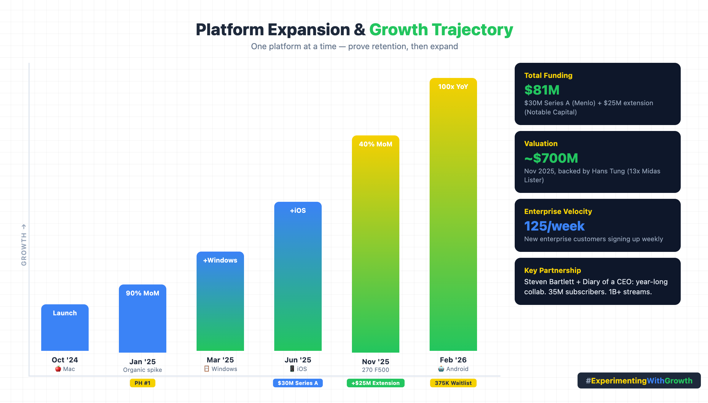 November 2025: $25M Series A extension led by Notable Capital (Hans Tung, 13-time Forbes Midas Lister who backed Airbnb, Slack, Anthropic, TikTok), with participation from Steven Bartlett’s Flight Fund. Total funding: $81M. Valuation: $700M.
